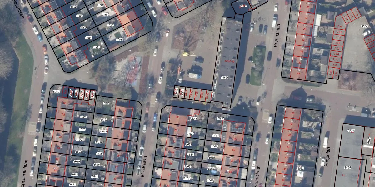 Maluslaan 18-28 is gelegen op kadastraal perceel ASV00M2080. Deze kadastrale aanduiding is uniek en wordt gebruikt door het Kadaster om eigendomsrechten en andere zakelijke rechten vast te leggen. Het perceel maakt onderdeel uit van de kadastrale gemeente Amstelveen.