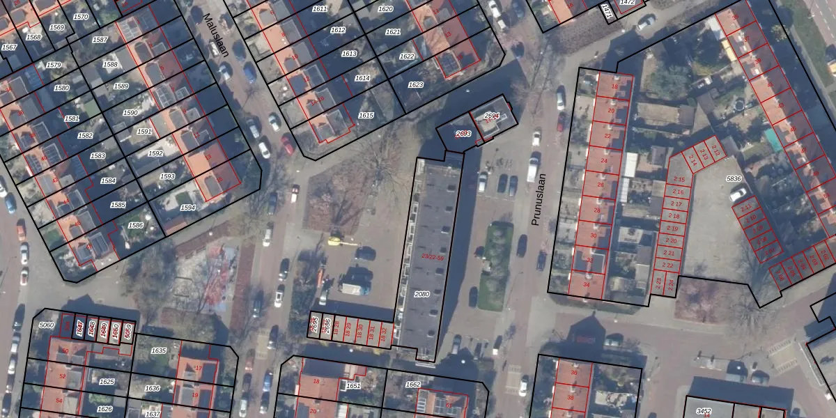 Maluslaan 18-38 is gelegen op kadastraal perceel ASV00M2080. Deze kadastrale aanduiding is uniek en wordt gebruikt door het Kadaster om eigendomsrechten en andere zakelijke rechten vast te leggen. Het perceel maakt onderdeel uit van de kadastrale gemeente Amstelveen.