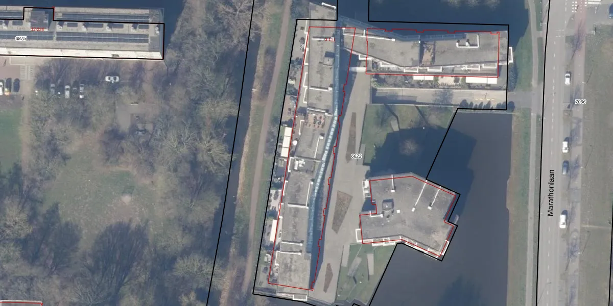 Het perceel waarop Marathonlaan 75 staat heeft een oppervlakte van 5532 m². Dit is een zeer groot perceel. De perceeloppervlakte wordt geregistreerd door het Kadaster. Gedetailleerde informatie over de maten van dit perceel kunt u vinden in het rapport Kadastrale kaart met maatvoering van Marathonlaan 75.