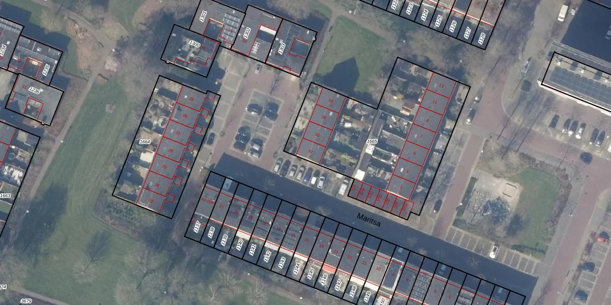 Maritsa 37 is gelegen op kadastraal perceel ASV00L1665. Deze kadastrale aanduiding is uniek en wordt gebruikt door het Kadaster om eigendomsrechten en andere zakelijke rechten vast te leggen. Het perceel maakt onderdeel uit van de kadastrale gemeente Amstelveen.