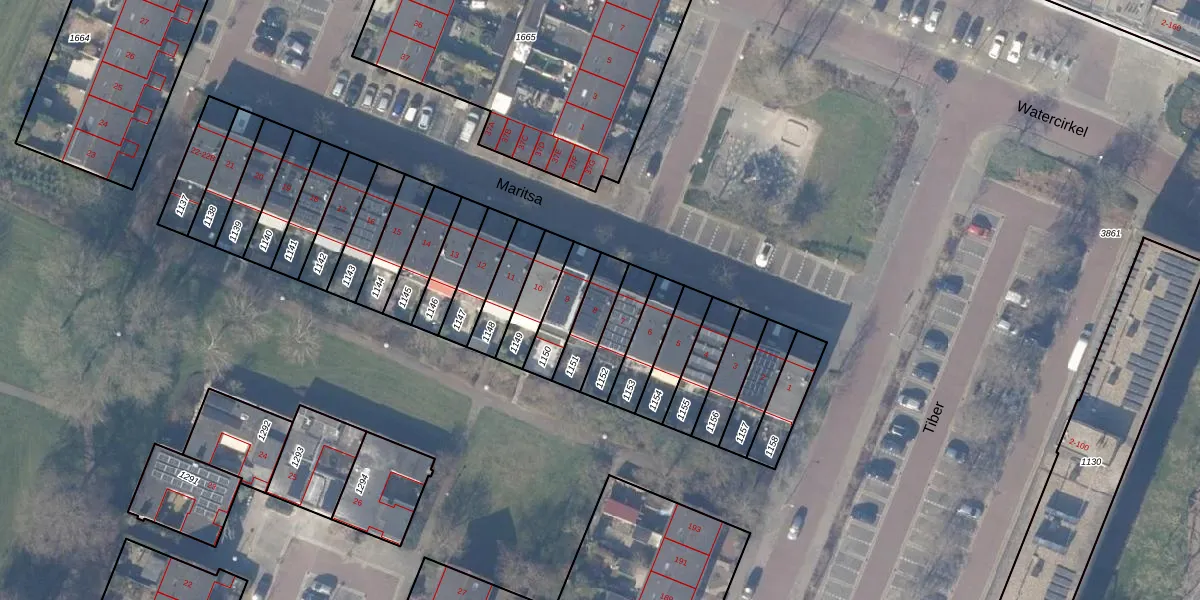 Maritsa 8 is gelegen op kadastraal perceel ASV00L1151. Deze kadastrale aanduiding is uniek en wordt gebruikt door het Kadaster om eigendomsrechten en andere zakelijke rechten vast te leggen. Het perceel maakt onderdeel uit van de kadastrale gemeente Amstelveen.
