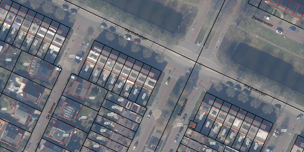 Gebruik de zoekbalk of klik op een perceel voor informatie over de adressen binnen dit perceel.
