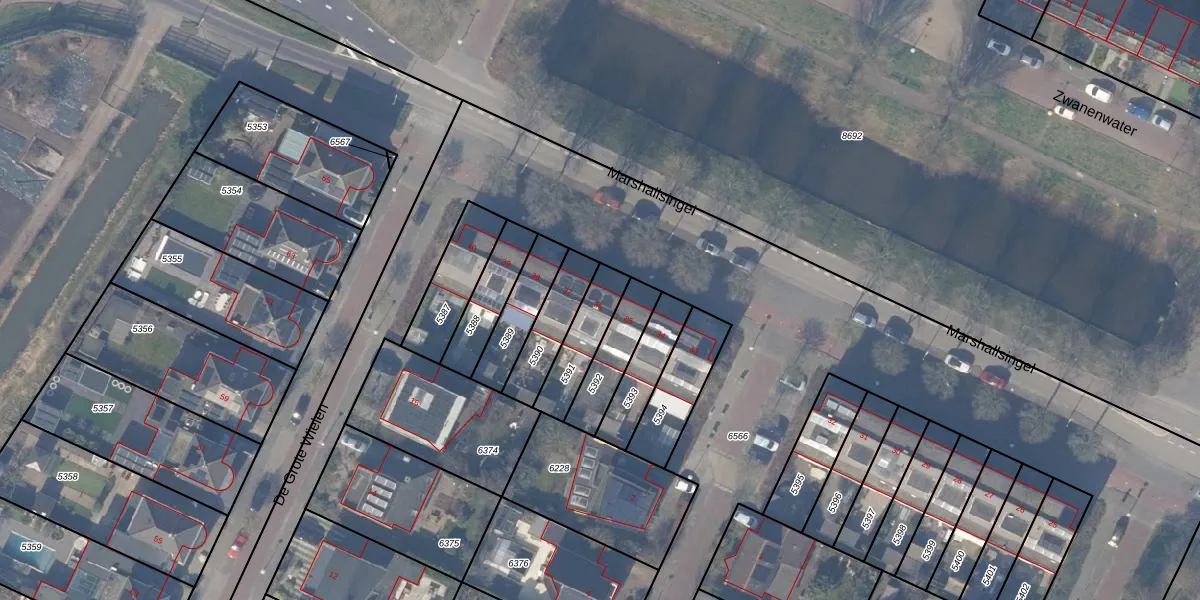 Marshallsingel 36 is gelegen op kadastraal perceel ASV00O5391. Deze kadastrale aanduiding is uniek en wordt gebruikt door het Kadaster om eigendomsrechten en andere zakelijke rechten vast te leggen. Het perceel maakt onderdeel uit van de kadastrale gemeente Amstelveen.