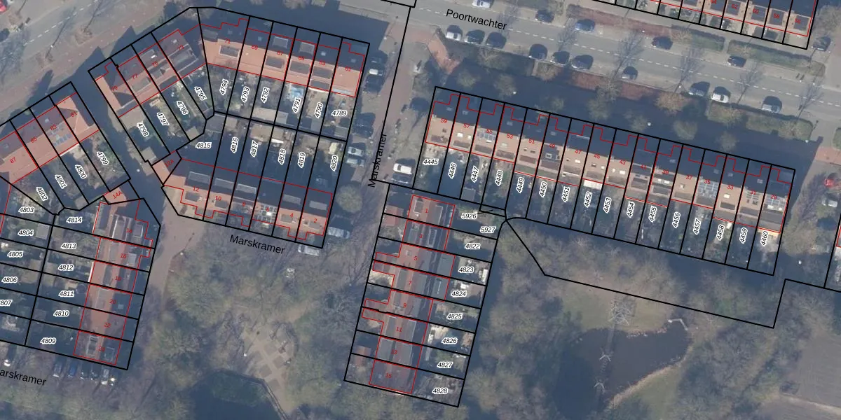 Het perceel waarop Marskramer 1 staat heeft een oppervlakte van 191 m². Dit is een middelgroot perceel. De perceeloppervlakte wordt geregistreerd door het Kadaster. Gedetailleerde informatie over de maten van dit perceel kunt u vinden in het rapport Kadastrale kaart met maatvoering van Marskramer 1.