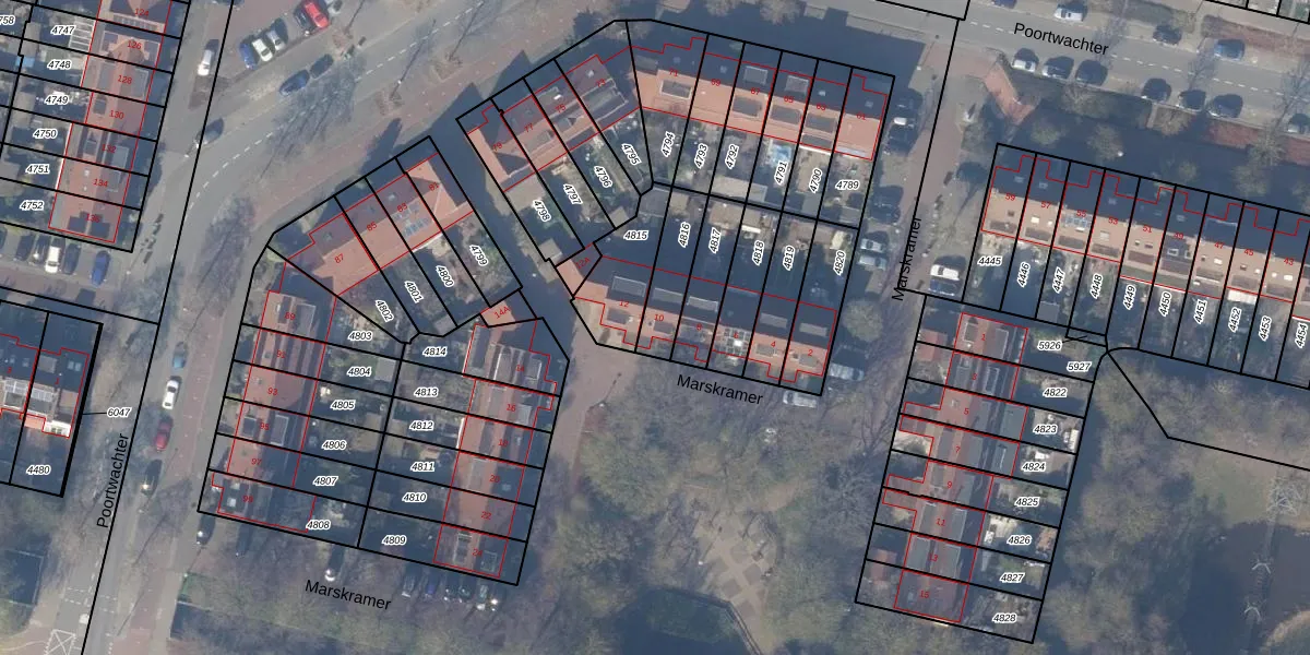 Gebruik de zoekbalk of klik op een perceel voor informatie over de adressen binnen dit perceel.
