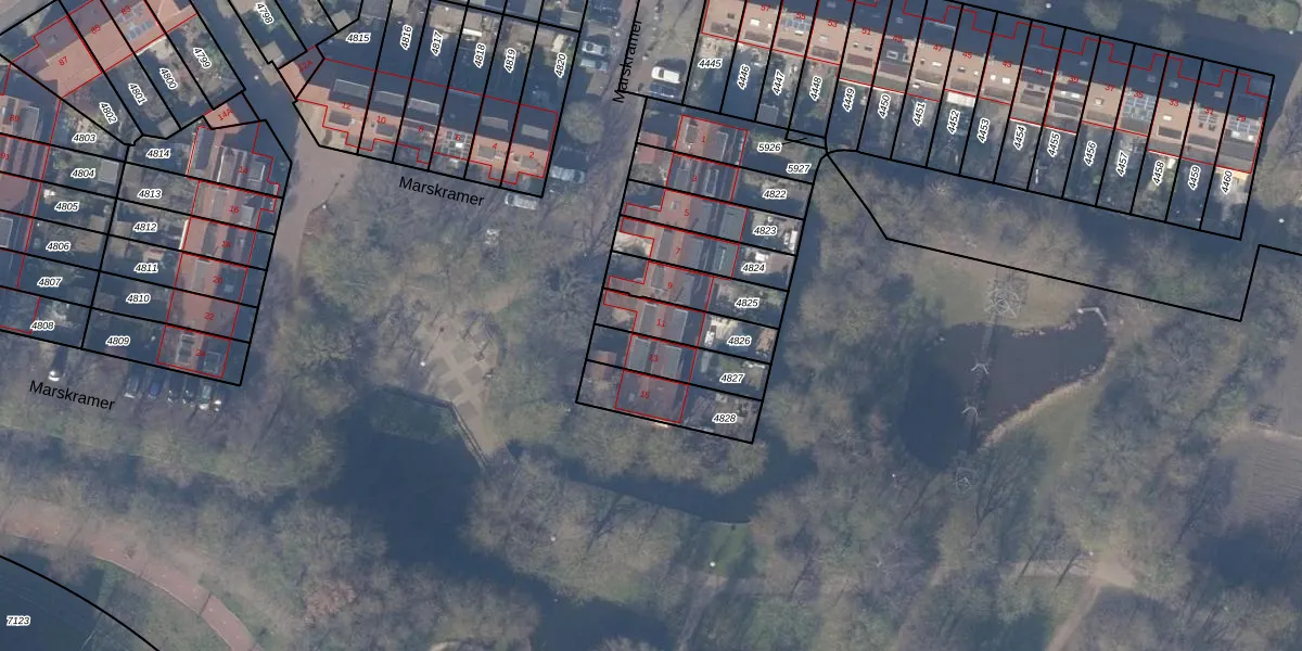 Marskramer 11 is gelegen op kadastraal perceel ASV00M4826. Deze kadastrale aanduiding is uniek en wordt gebruikt door het Kadaster om eigendomsrechten en andere zakelijke rechten vast te leggen. Het perceel maakt onderdeel uit van de kadastrale gemeente Amstelveen.