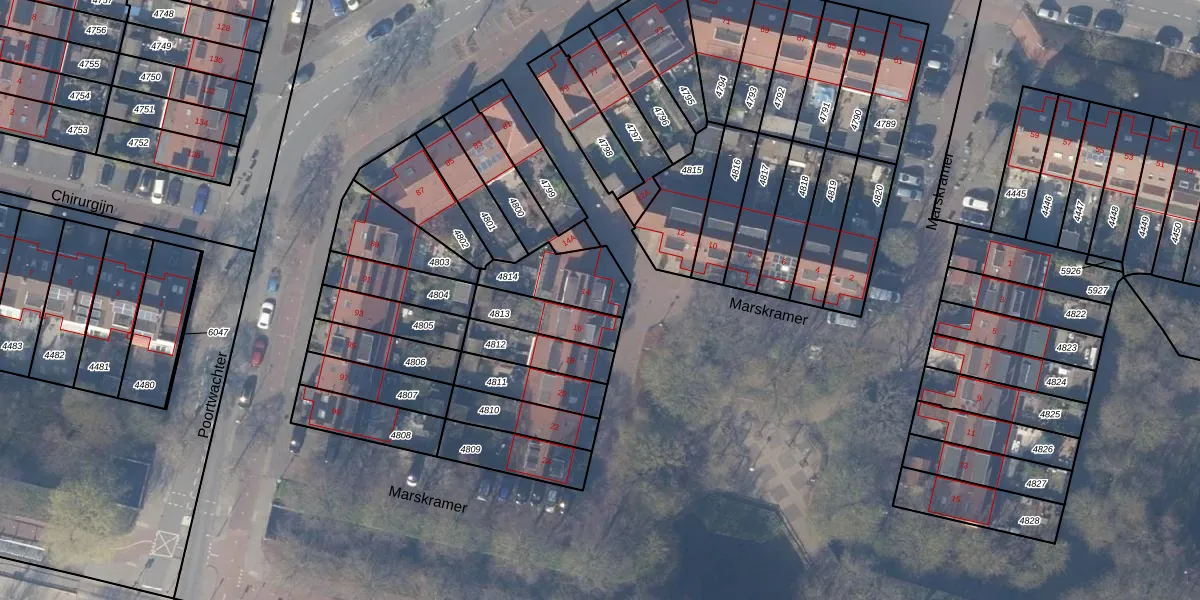 Gebruik de zoekbalk of klik op een perceel voor informatie over de adressen binnen dit perceel.