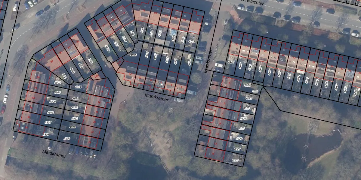 Gebruik de zoekbalk of klik op een perceel voor informatie over de adressen binnen dit perceel.