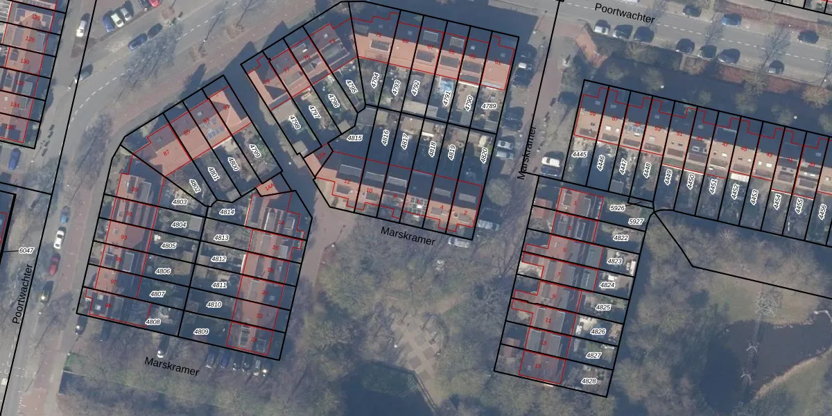 Het perceel waarop Marskramer 6 staat heeft een oppervlakte van 148 m². Dit is een middelgroot perceel. De perceeloppervlakte wordt geregistreerd door het Kadaster. Gedetailleerde informatie over de maten van dit perceel kunt u vinden in het rapport Kadastrale kaart met maatvoering van Marskramer 6.