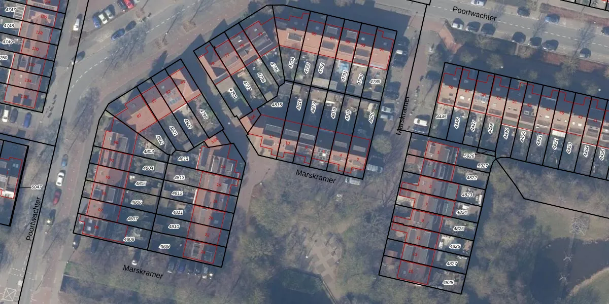 Gebruik de zoekbalk of klik op een perceel voor informatie over de adressen binnen dit perceel.