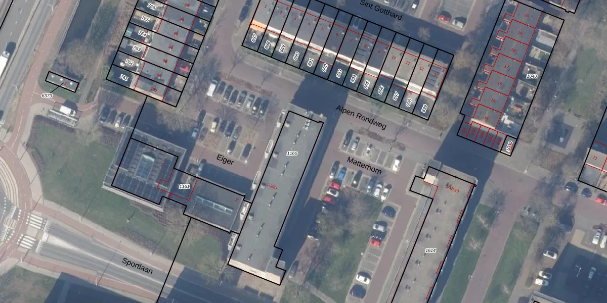 Het perceel waarop Matterhorn 39-G staat heeft een oppervlakte van 709 m². Dit is een groot perceel. De perceeloppervlakte wordt geregistreerd door het Kadaster. Gedetailleerde informatie over de maten van dit perceel kunt u vinden in het rapport Kadastrale kaart met maatvoering van Matterhorn 39-G.