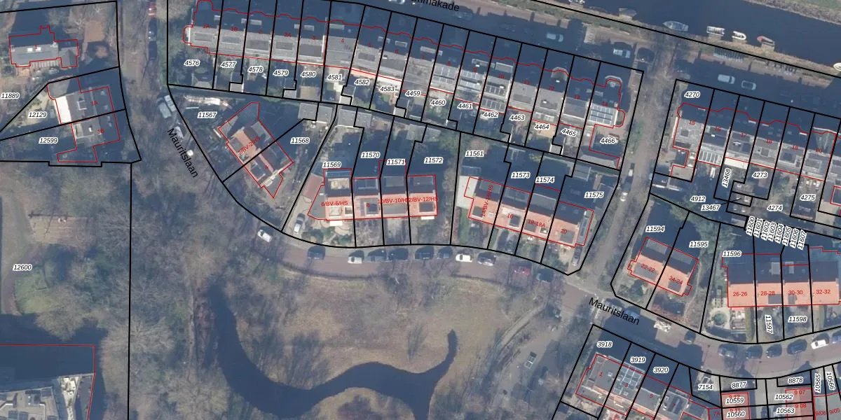 Mauritslaan 12-HS is gelegen op kadastraal perceel ASV00H11572. Deze kadastrale aanduiding is uniek en wordt gebruikt door het Kadaster om eigendomsrechten en andere zakelijke rechten vast te leggen. Het perceel maakt onderdeel uit van de kadastrale gemeente Amstelveen.