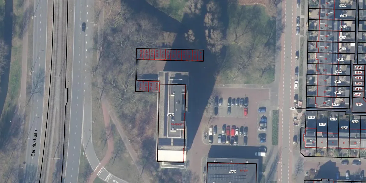 Het adres is gelegen op perceel 4938 in de sectie I en de kadastrale gemeente Amstelveen. De kadastrale aanduiding is aldus ASV00-I-4938. Het perceel is 937 m² groot. Dat is kleiner dan de gemiddelde perceeloppervlakte in Amstelveen, dat op 1598,6 m² ligt. Het kleinste perceel in de kadastrale gemeente is 0 m² groot. De grootste perceeloppervlakte is 1,78 km². Op het perceel liggen in totaal 80 adressen. De huidige grenzen van het perceel zijn digitaal in de Basisregistratie Kadaster (BRK) geregistreerd op 27-10-2009.