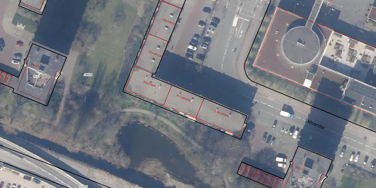 Het perceel waarop Meander 1007-D-4 staat heeft een oppervlakte van 2857 m². Dit is een zeer groot perceel. De perceeloppervlakte wordt geregistreerd door het Kadaster. Gedetailleerde informatie over de maten van dit perceel kunt u vinden in het rapport Kadastrale kaart met maatvoering van Meander 1007-D-4.