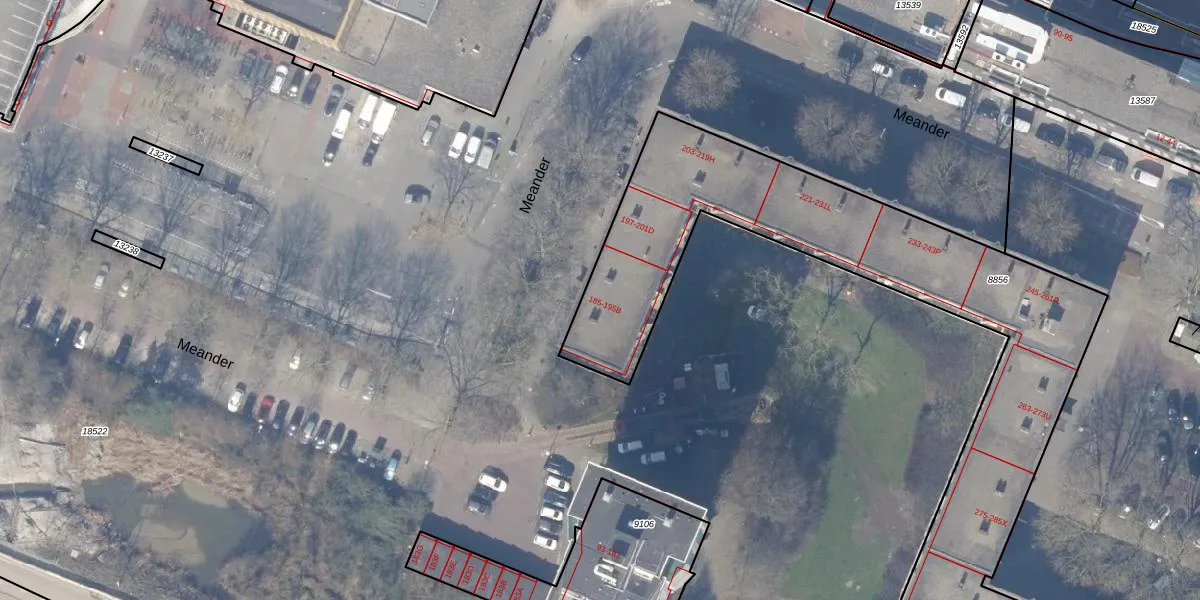 Het perceel waarop Meander 189 staat heeft een oppervlakte van 2860 m². Dit is een zeer groot perceel. De perceeloppervlakte wordt geregistreerd door het Kadaster. Gedetailleerde informatie over de maten van dit perceel kunt u vinden in het rapport Kadastrale kaart met maatvoering van Meander 189.