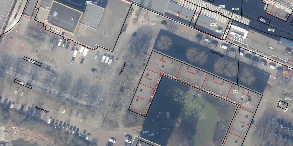 Meander 201-D is gelegen op kadastraal perceel ASV00H8856. Deze kadastrale aanduiding is uniek en wordt gebruikt door het Kadaster om eigendomsrechten en andere zakelijke rechten vast te leggen. Het perceel maakt onderdeel uit van de kadastrale gemeente Amstelveen.