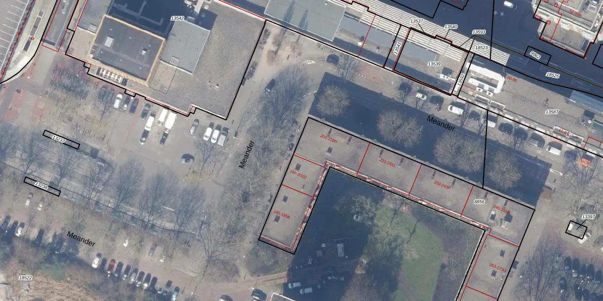 Het perceel waarop Meander 219-E staat heeft een oppervlakte van 2860 m². Dit is een zeer groot perceel. De perceeloppervlakte wordt geregistreerd door het Kadaster. Gedetailleerde informatie over de maten van dit perceel kunt u vinden in het rapport Kadastrale kaart met maatvoering van Meander 219-E.