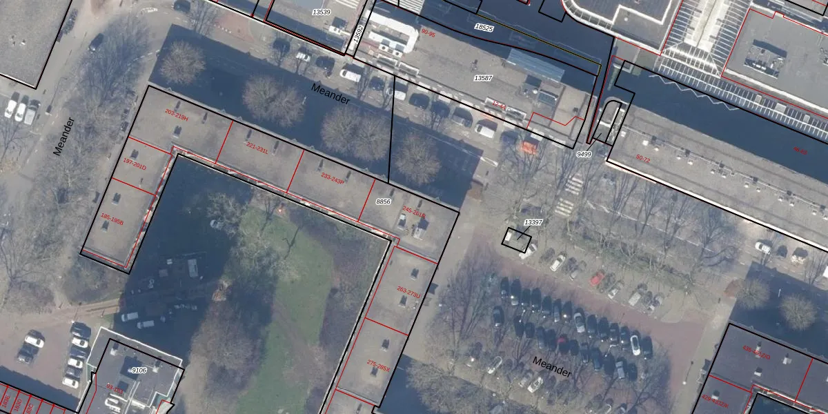 Meander 255 is gelegen op kadastraal perceel ASV00H8856. Deze kadastrale aanduiding is uniek en wordt gebruikt door het Kadaster om eigendomsrechten en andere zakelijke rechten vast te leggen. Het perceel maakt onderdeel uit van de kadastrale gemeente Amstelveen.