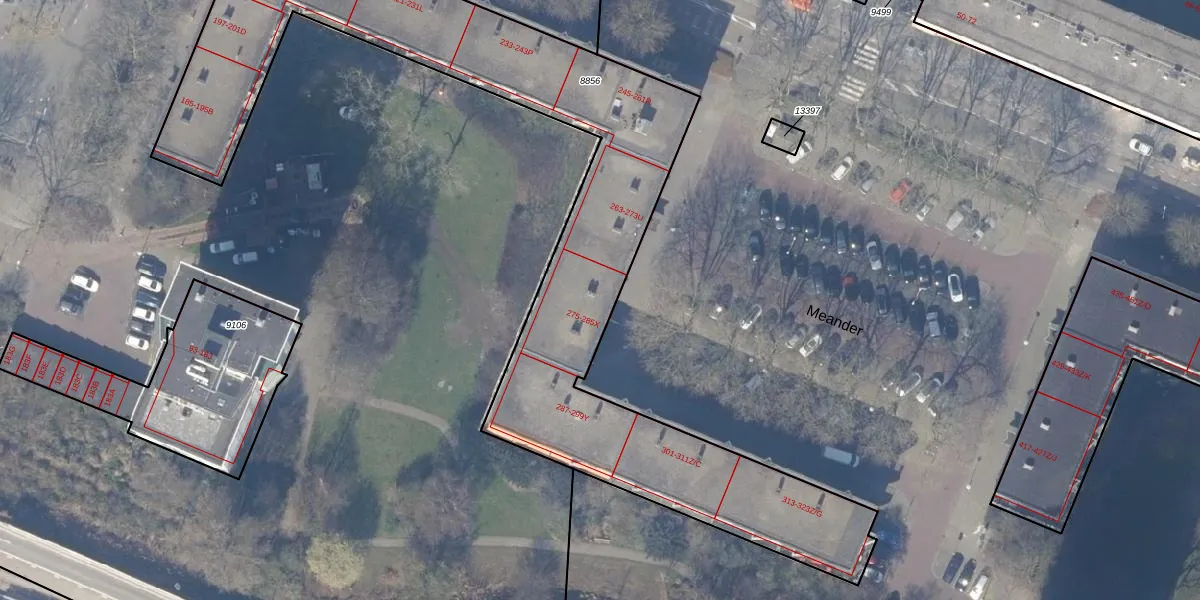 Meander 285-W is gelegen op kadastraal perceel ASV00H8856. Deze kadastrale aanduiding is uniek en wordt gebruikt door het Kadaster om eigendomsrechten en andere zakelijke rechten vast te leggen. Het perceel maakt onderdeel uit van de kadastrale gemeente Amstelveen.
