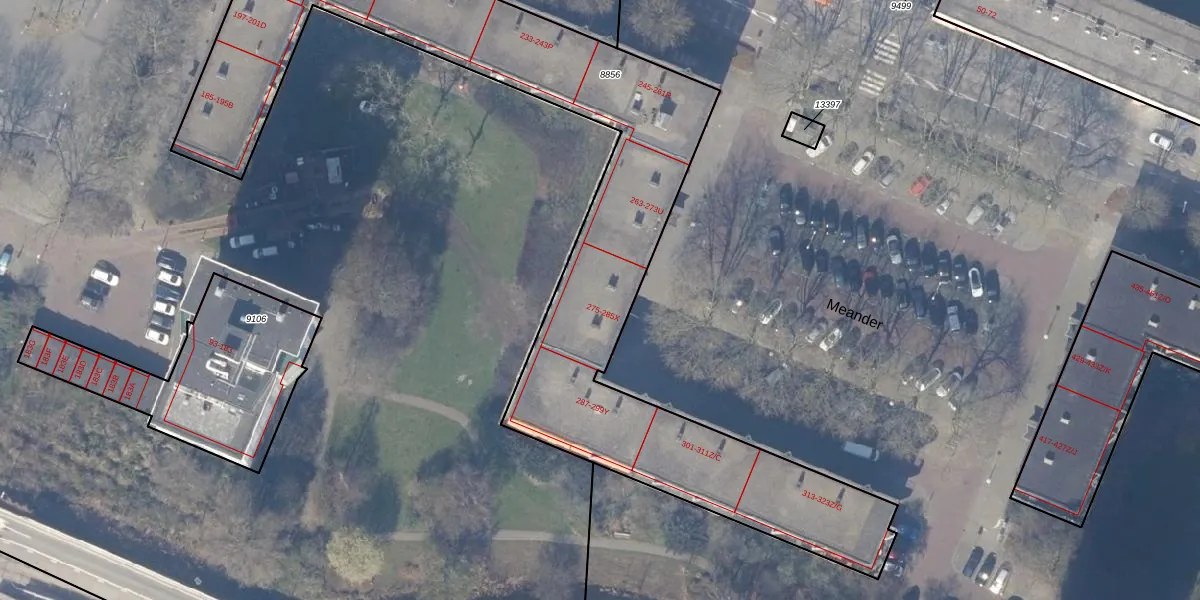 Het perceel waarop Meander 285 staat heeft een oppervlakte van 2860 m². Dit is een zeer groot perceel. De perceeloppervlakte wordt geregistreerd door het Kadaster. Gedetailleerde informatie over de maten van dit perceel kunt u vinden in het rapport Kadastrale kaart met maatvoering van Meander 285.