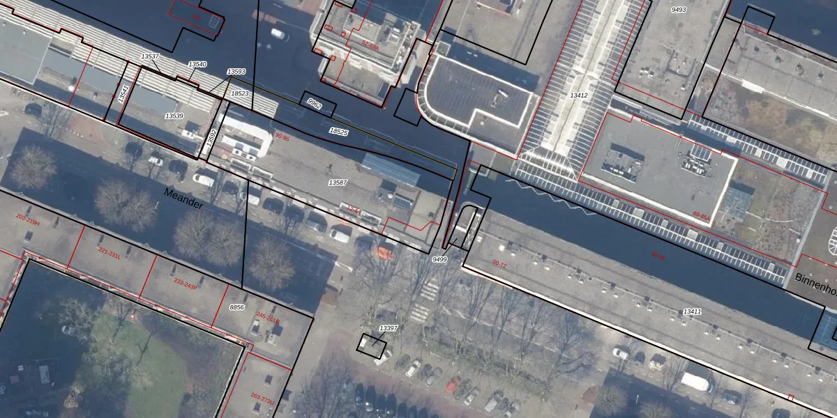 Het perceel waarop Meander 42 staat heeft een oppervlakte van 961 m². Dit is een groot perceel. De perceeloppervlakte wordt geregistreerd door het Kadaster. Gedetailleerde informatie over de maten van dit perceel kunt u vinden in het rapport Kadastrale kaart met maatvoering van Meander 42.