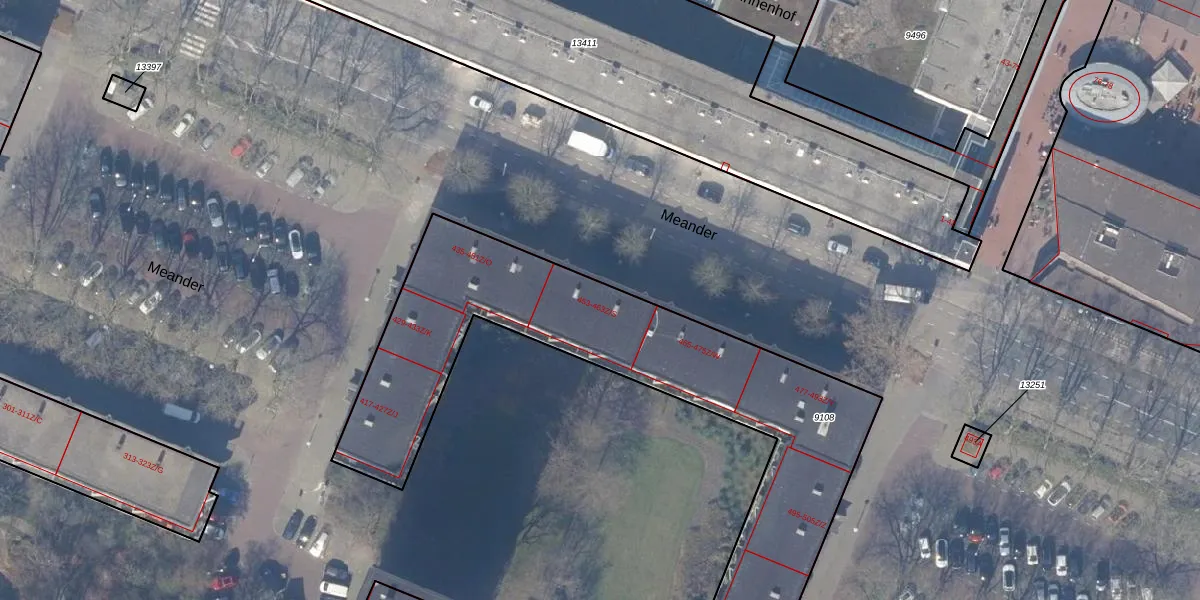 Het perceel waarop Meander 461 staat heeft een oppervlakte van 2857 m². Dit is een zeer groot perceel. De perceeloppervlakte wordt geregistreerd door het Kadaster. Gedetailleerde informatie over de maten van dit perceel kunt u vinden in het rapport Kadastrale kaart met maatvoering van Meander 461.