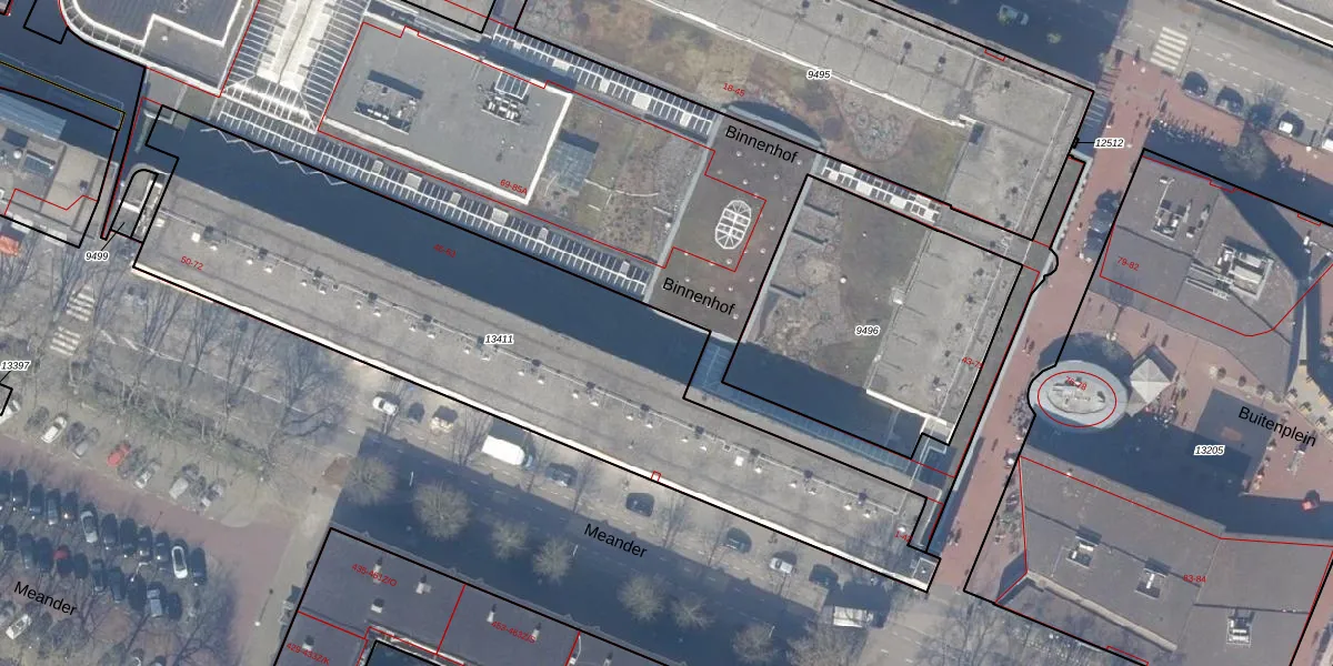 Het perceel waarop Meander 68 staat heeft een oppervlakte van 2621 m². Dit is een zeer groot perceel. De perceeloppervlakte wordt geregistreerd door het Kadaster. Gedetailleerde informatie over de maten van dit perceel kunt u vinden in het rapport Kadastrale kaart met maatvoering van Meander 68.