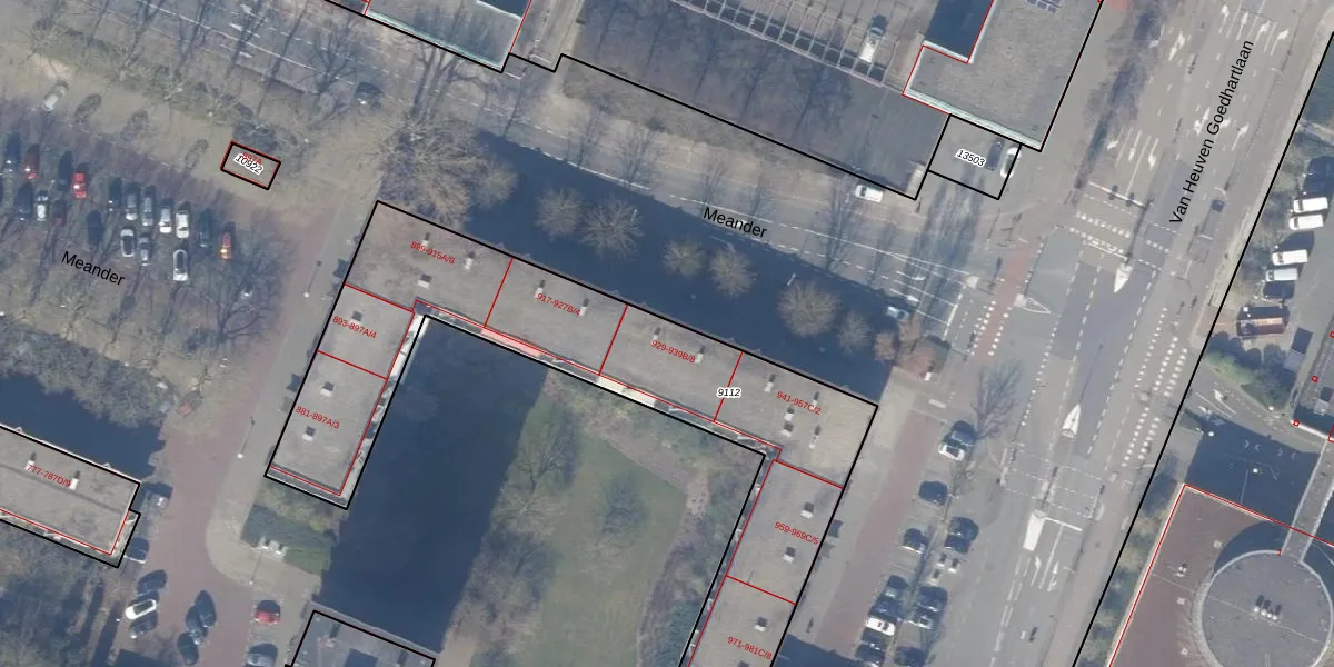 Meander 939-B-6 is gelegen op kadastraal perceel ASV00H9112. Deze kadastrale aanduiding is uniek en wordt gebruikt door het Kadaster om eigendomsrechten en andere zakelijke rechten vast te leggen. Het perceel maakt onderdeel uit van de kadastrale gemeente Amstelveen.