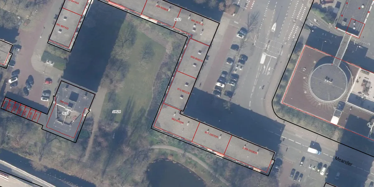 Het perceel waarop Meander 981 staat heeft een oppervlakte van 2857 m². Dit is een zeer groot perceel. De perceeloppervlakte wordt geregistreerd door het Kadaster. Gedetailleerde informatie over de maten van dit perceel kunt u vinden in het rapport Kadastrale kaart met maatvoering van Meander 981.