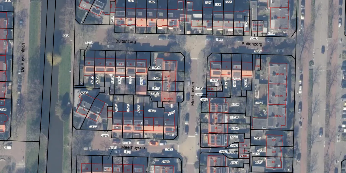 Gebruik de zoekbalk of klik op een perceel voor informatie over de adressen binnen dit perceel.