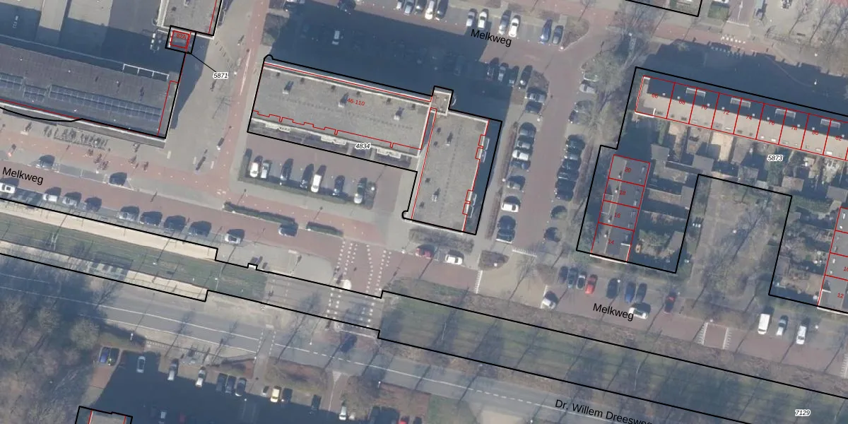 Het perceel waarop Melkweg 58 staat heeft een oppervlakte van 1215 m². Dit is een zeer groot perceel. De perceeloppervlakte wordt geregistreerd door het Kadaster. Gedetailleerde informatie over de maten van dit perceel kunt u vinden in het rapport Kadastrale kaart met maatvoering van Melkweg 58.