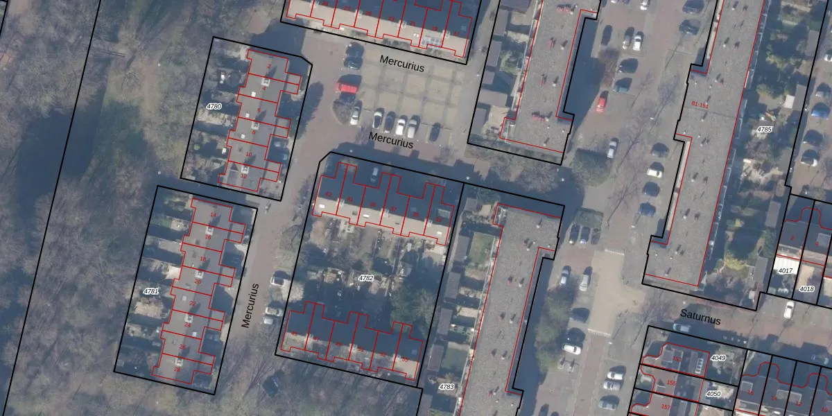 Het perceel waarop Mercurius 35 staat heeft een oppervlakte van 1762 m². Dit is een zeer groot perceel. De perceeloppervlakte wordt geregistreerd door het Kadaster. Gedetailleerde informatie over de maten van dit perceel kunt u vinden in het rapport Kadastrale kaart met maatvoering van Mercurius 35.