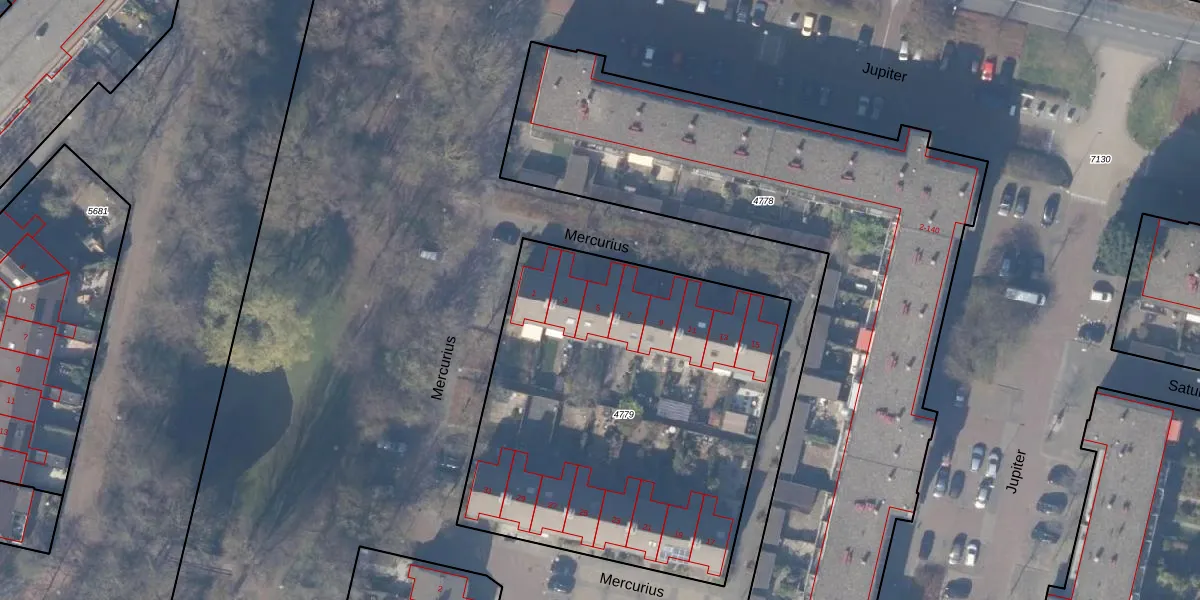 Het perceel waarop Mercurius 5 staat heeft een oppervlakte van 2246 m². Dit is een zeer groot perceel. De perceeloppervlakte wordt geregistreerd door het Kadaster. Gedetailleerde informatie over de maten van dit perceel kunt u vinden in het rapport Kadastrale kaart met maatvoering van Mercurius 5.