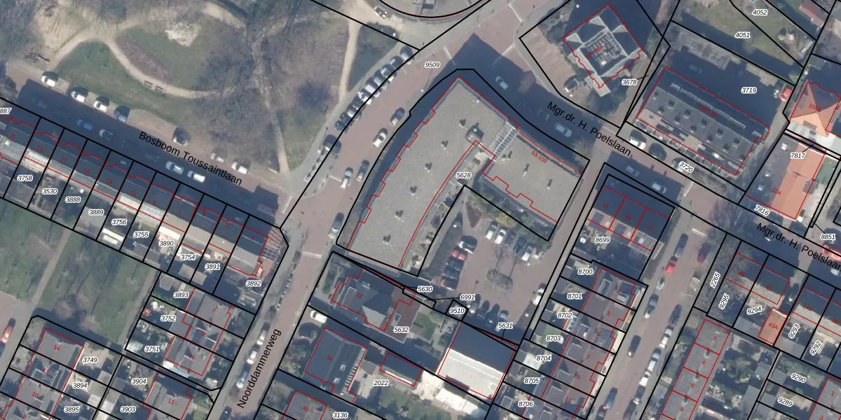 Mgr.dr. H. Poelslaan 65 is gelegen op kadastraal perceel ASV00O5628. Deze kadastrale aanduiding is uniek en wordt gebruikt door het Kadaster om eigendomsrechten en andere zakelijke rechten vast te leggen. Het perceel maakt onderdeel uit van de kadastrale gemeente Amstelveen.