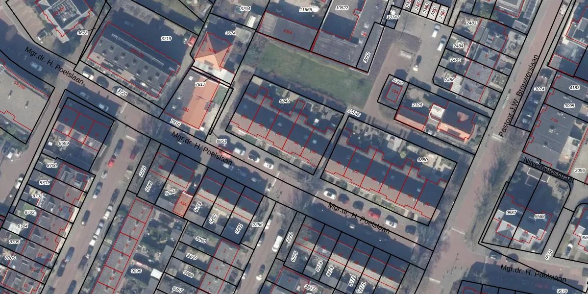 Het perceel waarop Mgr.dr. H. Poelslaan 94 staat heeft een oppervlakte van 751 m². Dit is een groot perceel. De perceeloppervlakte wordt geregistreerd door het Kadaster. Gedetailleerde informatie over de maten van dit perceel kunt u vinden in het rapport Kadastrale kaart met maatvoering van Mgr.dr. H. Poelslaan 94.