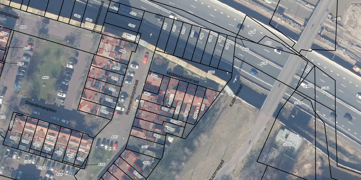 Het perceel waarop Middeldorpstraat 19 staat heeft een oppervlakte van 101 m². Dit is een middelgroot perceel. De perceeloppervlakte wordt geregistreerd door het Kadaster. Gedetailleerde informatie over de maten van dit perceel kunt u vinden in het rapport Kadastrale kaart met maatvoering van Middeldorpstraat 19.