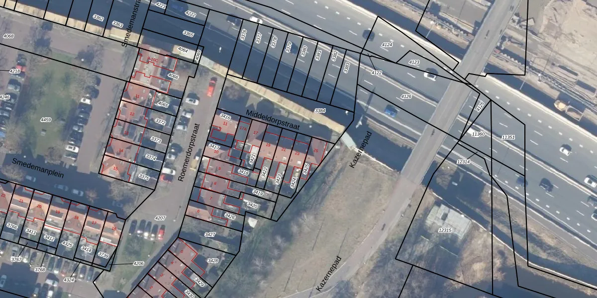 Het perceel waarop Middeldorpstraat 23 staat heeft een oppervlakte van 109 m². Dit is een middelgroot perceel. De perceeloppervlakte wordt geregistreerd door het Kadaster. Gedetailleerde informatie over de maten van dit perceel kunt u vinden in het rapport Kadastrale kaart met maatvoering van Middeldorpstraat 23.