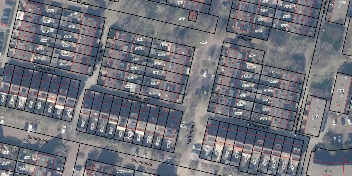 Gebruik de zoekbalk of klik op een perceel voor informatie over de adressen binnen dit perceel.