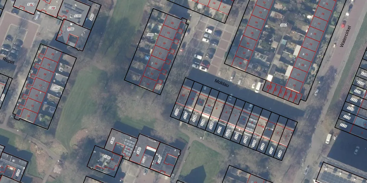 Gebruik de zoekbalk of klik op een perceel voor informatie over de adressen binnen dit perceel.