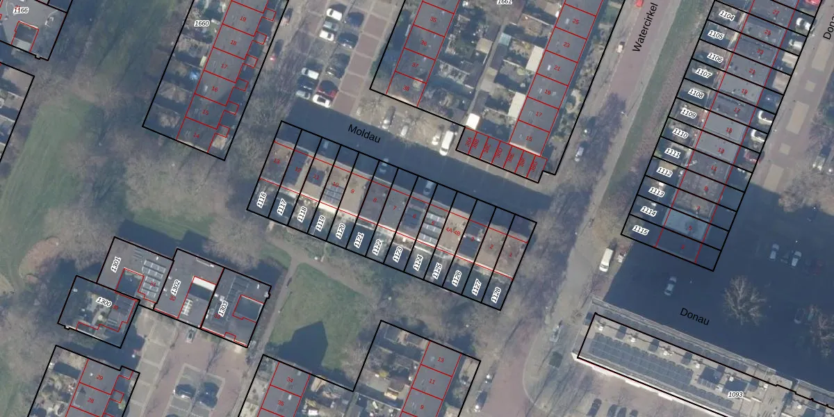 Gebruik de zoekbalk of klik op een perceel voor informatie over de adressen binnen dit perceel.