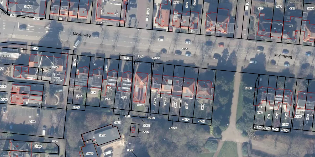 Het perceel waarop Molenweg 9 staat heeft een oppervlakte van 201 m². Dit is een middelgroot perceel. De perceeloppervlakte wordt geregistreerd door het Kadaster. Gedetailleerde informatie over de maten van dit perceel kunt u vinden in het rapport Kadastrale kaart met maatvoering van Molenweg 9.