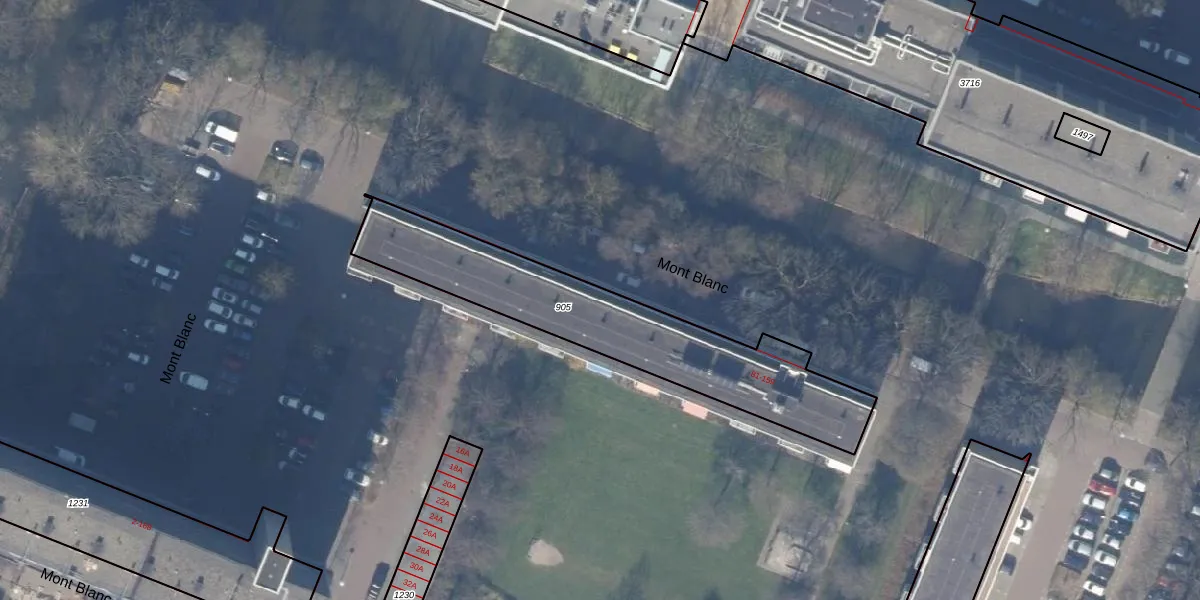 Het perceel waarop Mont Blanc 89-A staat heeft een oppervlakte van 949 m². Dit is een groot perceel. De perceeloppervlakte wordt geregistreerd door het Kadaster. Gedetailleerde informatie over de maten van dit perceel kunt u vinden in het rapport Kadastrale kaart met maatvoering van Mont Blanc 89-A.