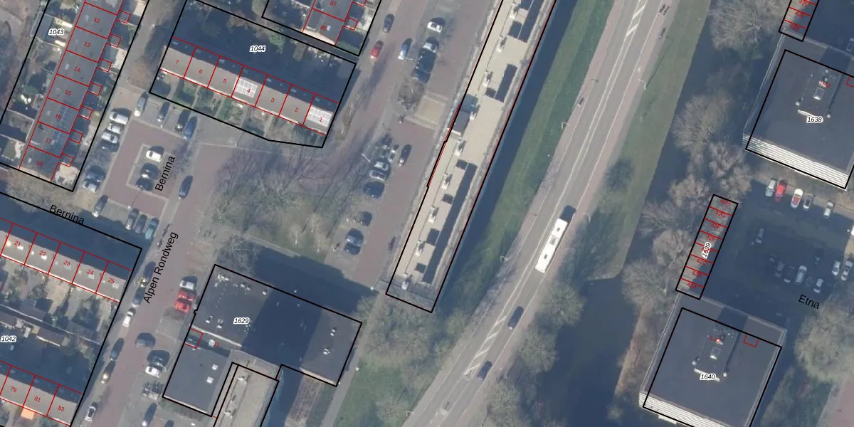 Het perceel waarop Monte Rosa 36-A staat heeft een oppervlakte van 1935 m². Dit is een zeer groot perceel. De perceeloppervlakte wordt geregistreerd door het Kadaster. Gedetailleerde informatie over de maten van dit perceel kunt u vinden in het rapport Kadastrale kaart met maatvoering van Monte Rosa 36-A.