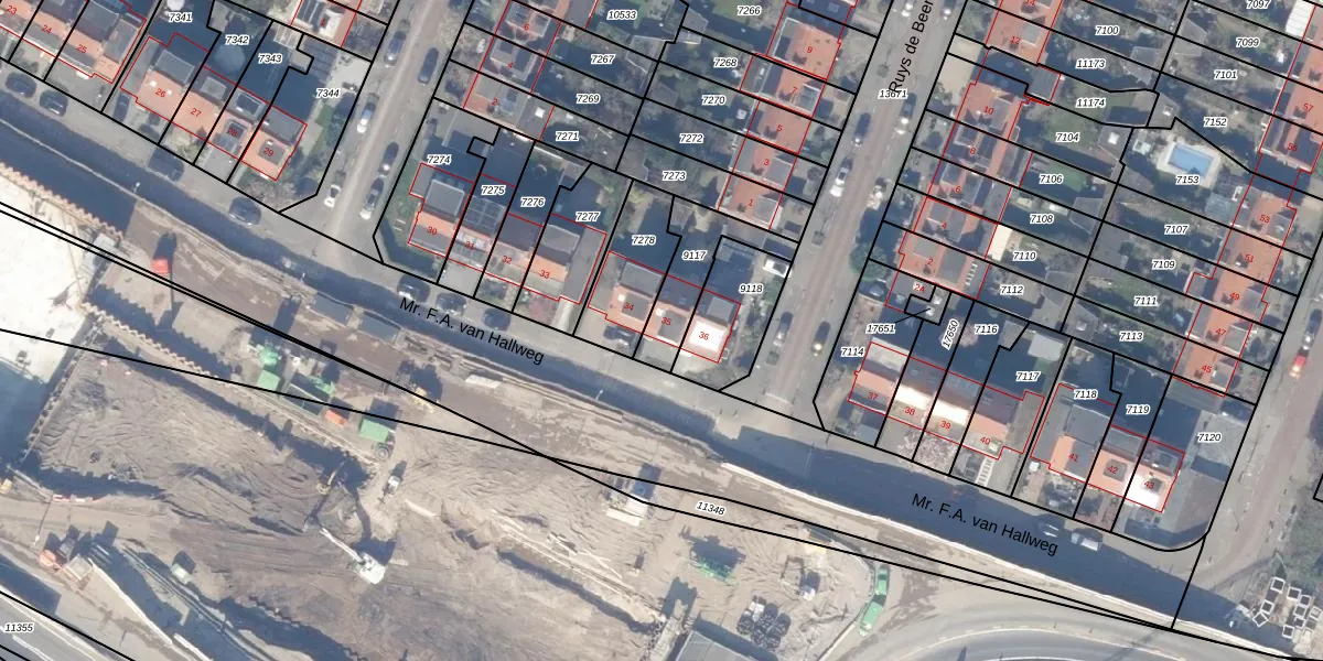 Het perceel waarop Mr. F.A. van Hallweg 35 staat heeft een oppervlakte van 202 m². Dit is een middelgroot perceel. De perceeloppervlakte wordt geregistreerd door het Kadaster. Gedetailleerde informatie over de maten van dit perceel kunt u vinden in het rapport Kadastrale kaart met maatvoering van Mr. F.A. van Hallweg 35.