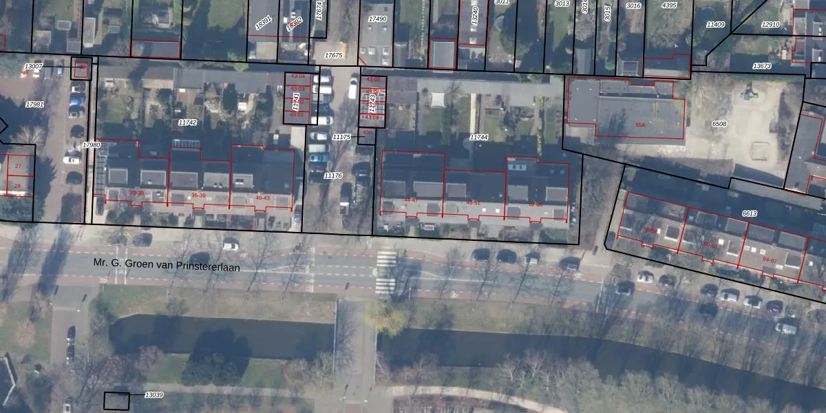 Mr. G. Groen van Prinstererlaan 45 is gelegen op kadastraal perceel ASV00H11744. Deze kadastrale aanduiding is uniek en wordt gebruikt door het Kadaster om eigendomsrechten en andere zakelijke rechten vast te leggen. Het perceel maakt onderdeel uit van de kadastrale gemeente Amstelveen.
