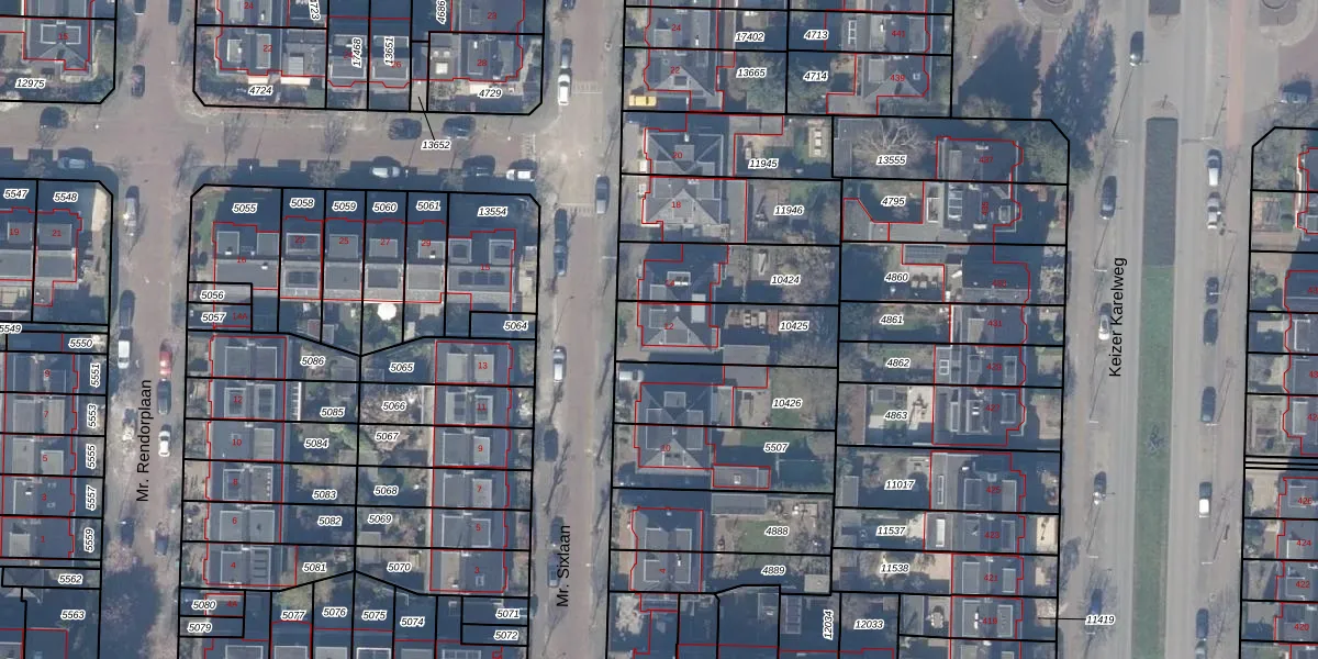 Het perceel waarop Mr. Sixlaan 12 staat heeft een oppervlakte van 316 m². Dit is een groot perceel. De perceeloppervlakte wordt geregistreerd door het Kadaster. Gedetailleerde informatie over de maten van dit perceel kunt u vinden in het rapport Kadastrale kaart met maatvoering van Mr. Sixlaan 12.