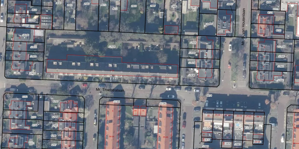 Mr. Troelstralaan 34 is gelegen op kadastraal perceel ASV00H12434. Deze kadastrale aanduiding is uniek en wordt gebruikt door het Kadaster om eigendomsrechten en andere zakelijke rechten vast te leggen. Het perceel maakt onderdeel uit van de kadastrale gemeente Amstelveen.