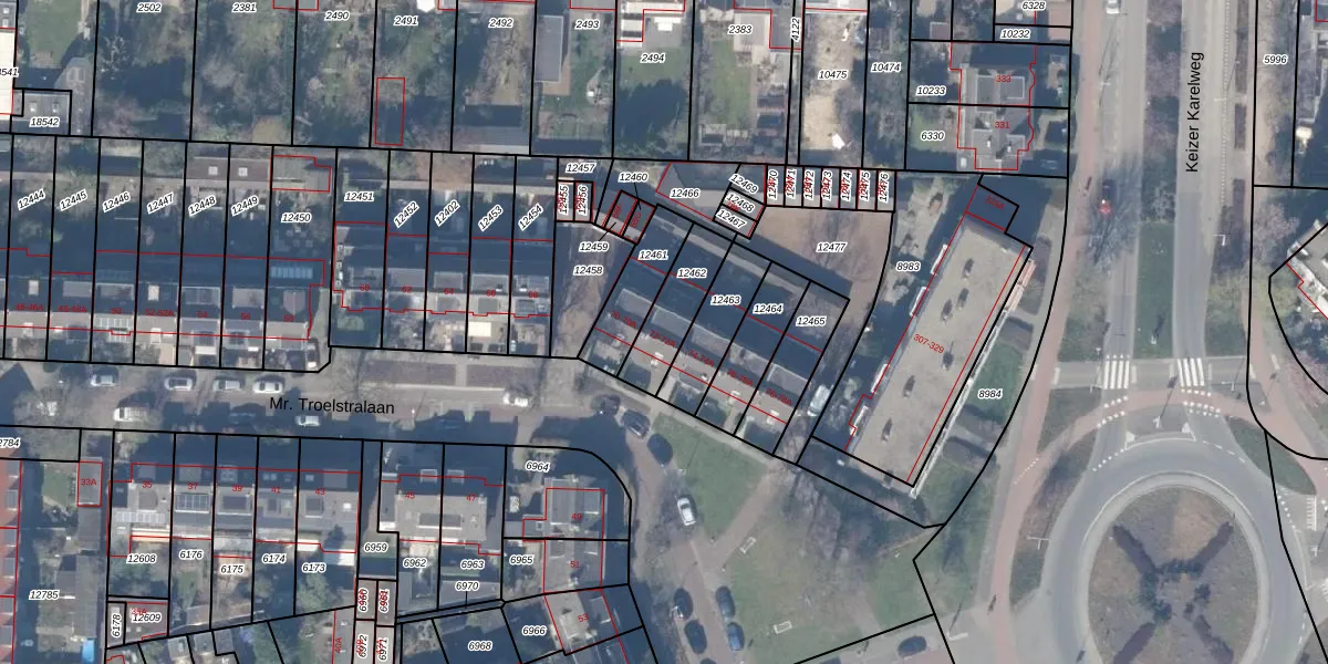 Het adres ligt op het perceel ASV00-H-12462, dat zich in de kadastrale gemeente Amstelveen bevindt. Het perceel is kleiner dan gemiddeld in Amstelveen. Het perceel is 166 m² groot, terwijl het gemiddelde ligt op 1598,49 m². Het grootste perceel in de kadastrale gemeente is 1,78 km². Het kleinste perceel heeft een oppervlakte van 0 m². Op het perceel liggen in totaal 2 adressen. De laatste wijziging in het de Basisregistratie Kadaster (BRK) was op 10-05-2001.