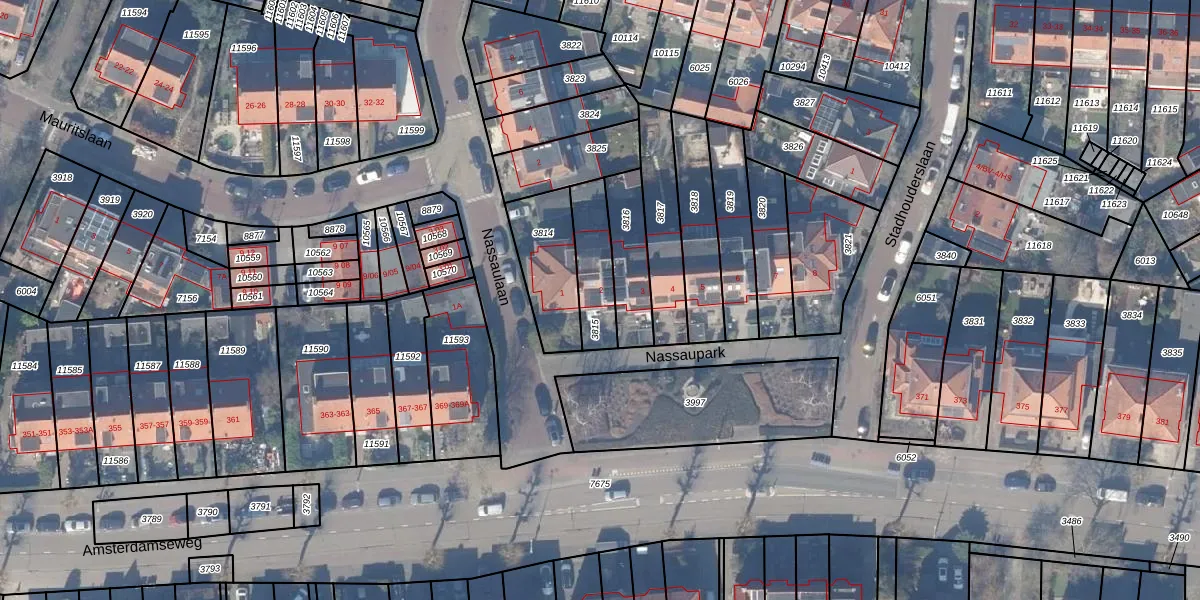 Het perceel waarop Nassaupark 2 staat heeft een oppervlakte van 166 m². Dit is een middelgroot perceel. De perceeloppervlakte wordt geregistreerd door het Kadaster. Gedetailleerde informatie over de maten van dit perceel kunt u vinden in het rapport Kadastrale kaart met maatvoering van Nassaupark 2.
