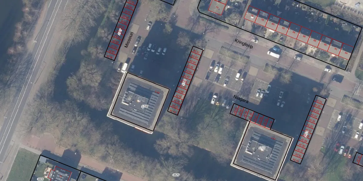 Niagara 42-50 is gelegen op kadastraal perceel ASV00L1709. Deze kadastrale aanduiding is uniek en wordt gebruikt door het Kadaster om eigendomsrechten en andere zakelijke rechten vast te leggen. Het perceel maakt onderdeel uit van de kadastrale gemeente Amstelveen.